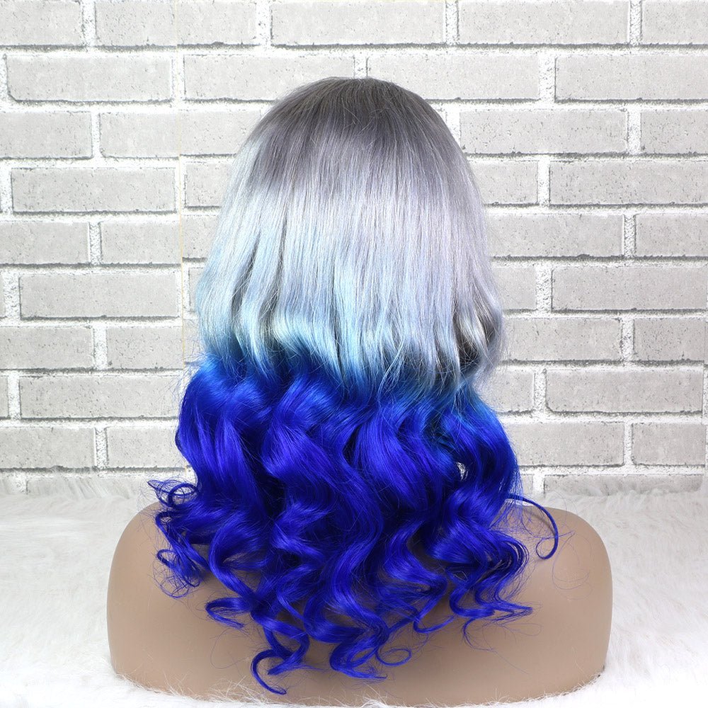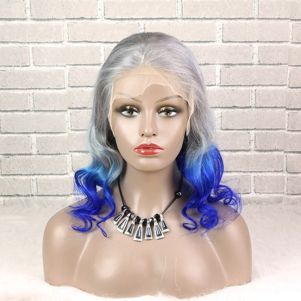 Ombre Silver Blue Human Hair Wavy 13X4 Lace Front Wigs